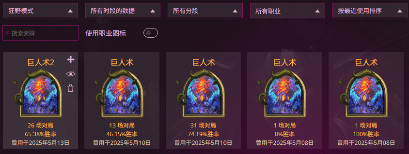 因为狂野环境实在是无聊,不想玩暗牧、生气气这些无脑卡组,我总是自己研究一些地沟油卡组玩,这一次我想起了手牌术,还有曾今辉煌无比的剑宗黑眼术,于是我结合这两个卡组和狂野任务术的构筑自己研究了一套巨人术(曾今巨人术也火过,但是因为当时很热门所有没怎么玩过)。