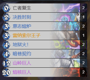 地狱火对抗稍慢的卡组可以4费配合红石头直接展开,对抗快攻可以在10血以下时回到15血,非常灵活。