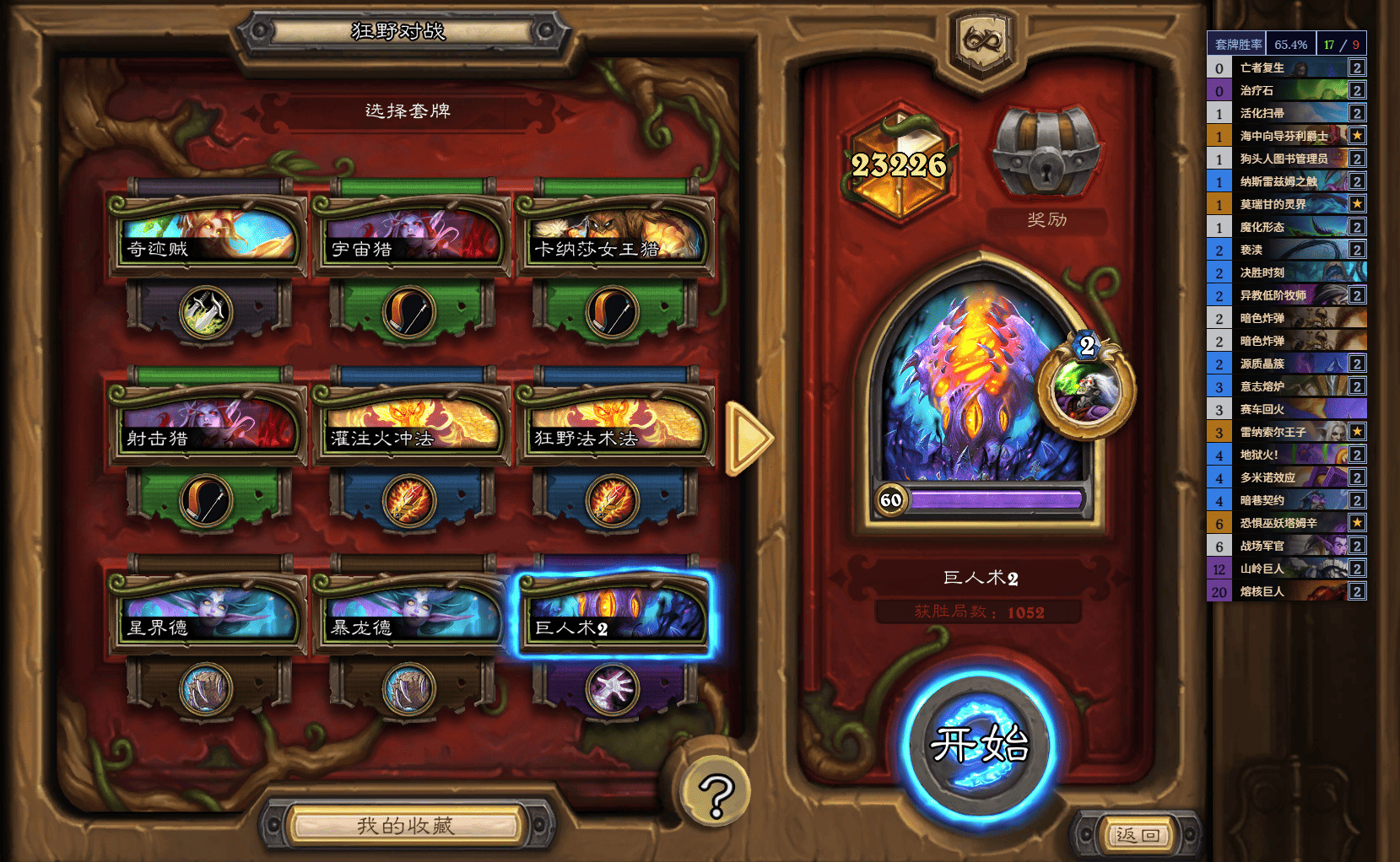 最终也是在10星额外星数的情况下以65%的胜率打上了传说!(胜率不算离谱,但是最初玩炉石时 自己尝试构筑卡组的时候 不正是炉石最有趣的时刻吗?我反正挺讨厌直接抄卡组的,至少改一张呀混蛋 手动滑稽 )