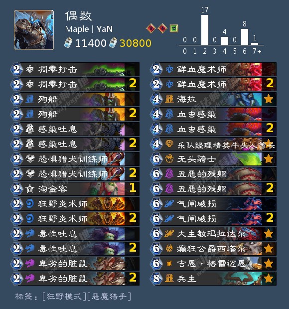 能同时大优暗牧和龟法的卡组找到了,面对号角骑也不落下风,打otk就只能看脏鼠换手的羁绊了。卡位调整上,无头和655可以优化,换成冻步、鲍勃、石酒、855任选。牛里带海绵斧、帕奇维克、基尔加丹,鸡蛋也可以换解牌(残骸遍野、邪爆)或者海星