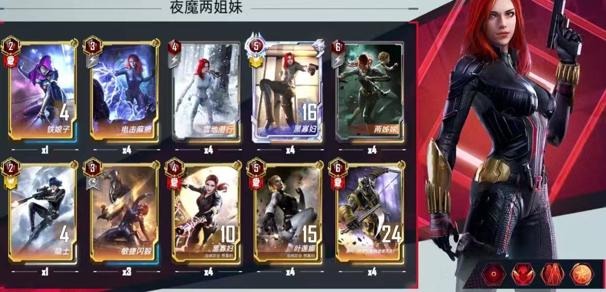 • 此卡组需要开夜魔侠与黑寡妇双链,并且需要四五费叶莲娜和寡妇那里的隐匿不消失链接。不需要全部开启,只有隐匿有用。
