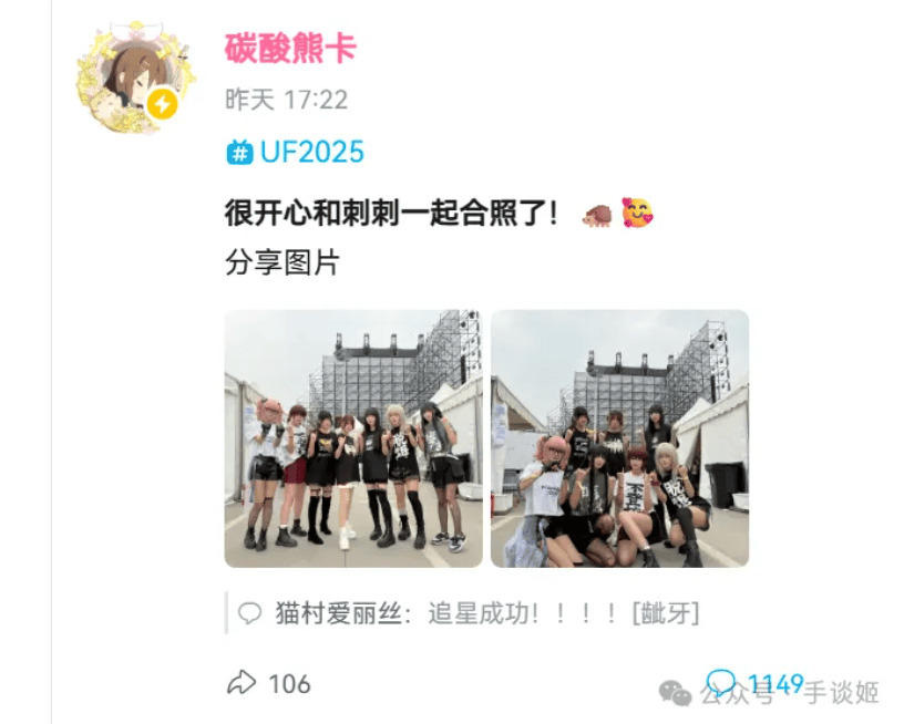 粉丝觉得是UF主办中有人动用人脉让碳酸熊卡等人促成了这次合影,纷纷前往UF评论区寻求一个解释。