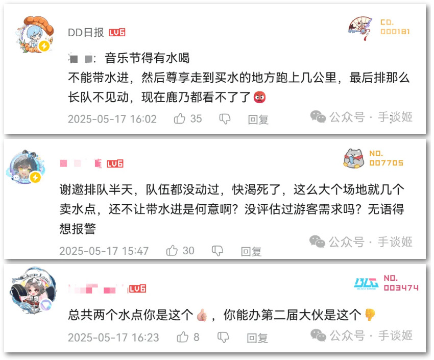 说真的不让带这些,姬可以理解,毕竟有些音乐节也不让带,怕出事情。然而若不给观众带这些必需品,那主办方就应该做好相应的保障措施。