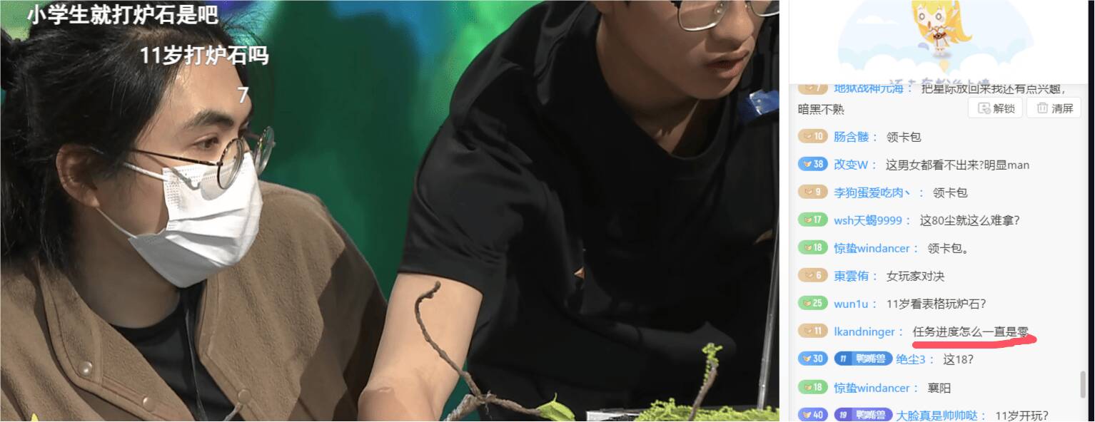 的进度条一动不动,因为还没触发条件,第一步直播间弹幕打领卡包,第二步进入专区,第三部绑定游戏账号,这样才可以哈