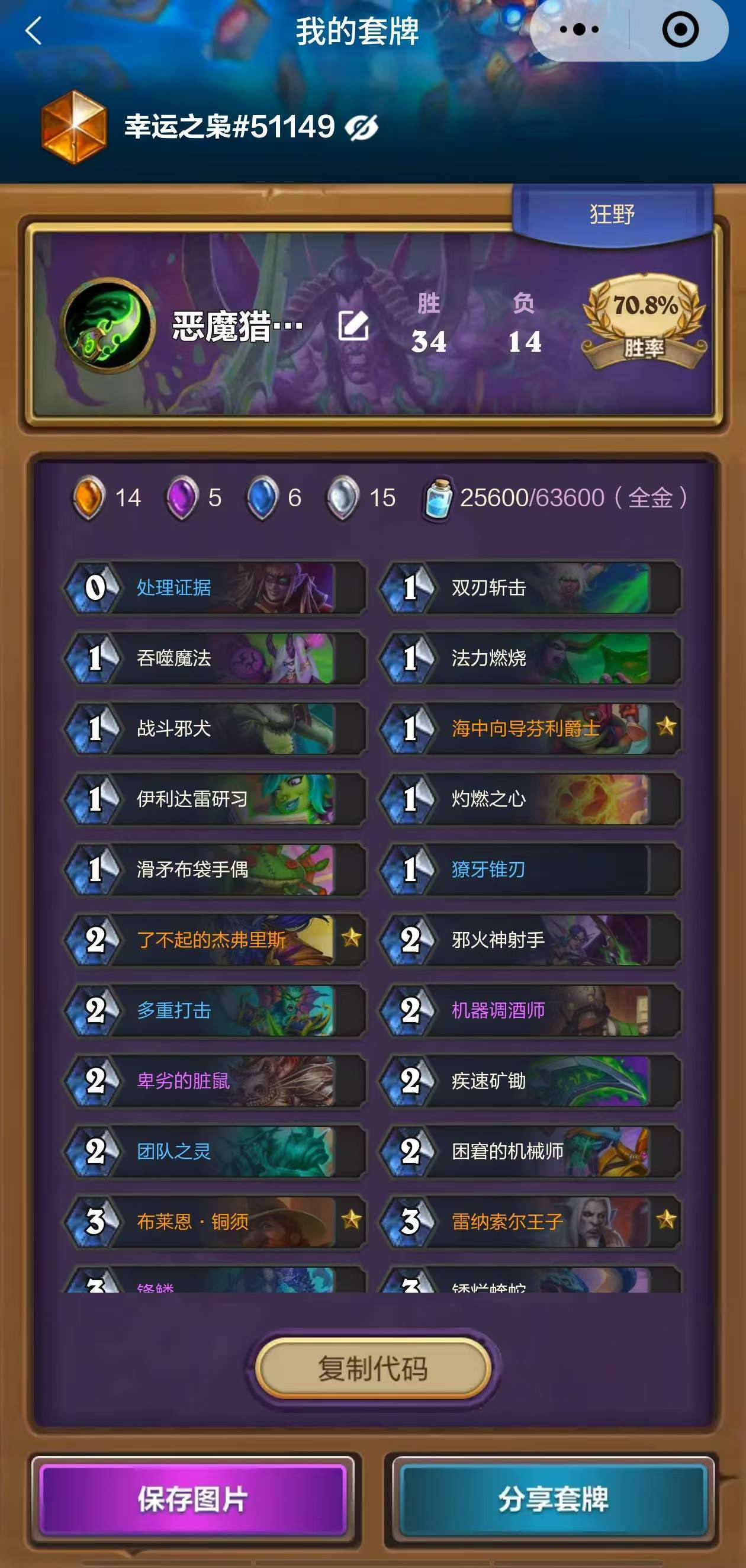 最后贴一套笔者自己10连胜冲上传说70+胜率的宇宙瞎