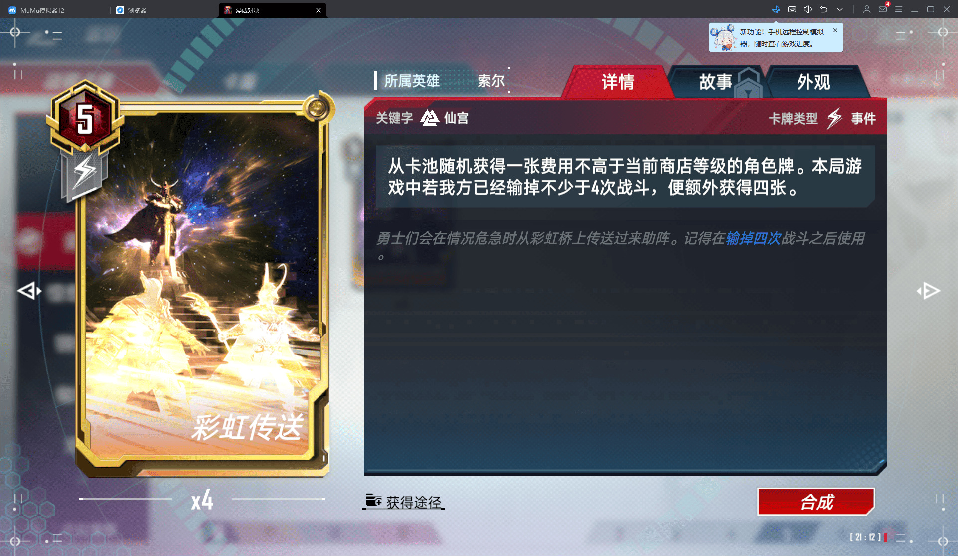 (2):四败过渡:这套就是用命石霍根和仙宫武库进行快速滤牌,主要是拿缩小凑四败上本打彩虹传送赌命了