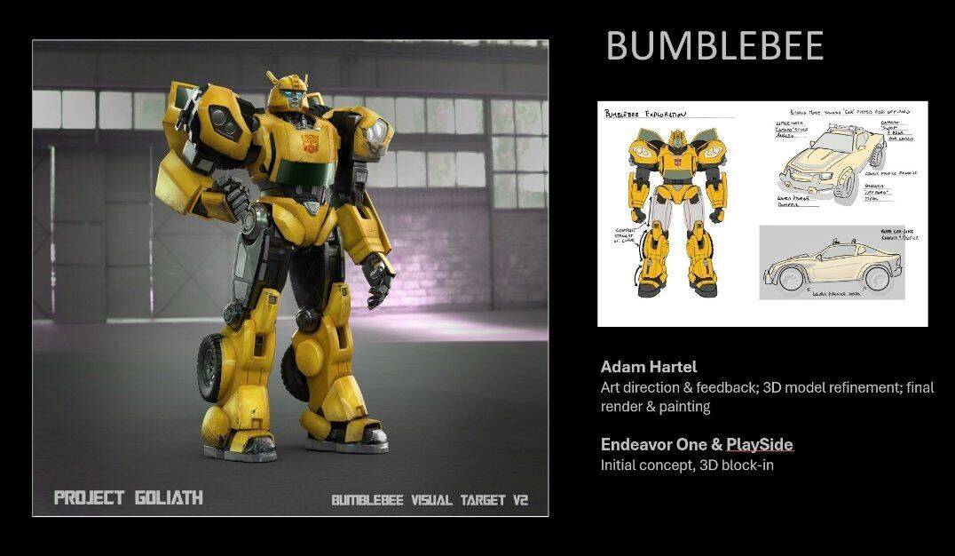 概念图最初由变形金刚资讯博主@arun09345在X平台披露,包含艺术家Adam Hartley创作的擎天柱与大黄蜂角色模型。图中不仅展示了多种形态的标志性变形金刚,还出现了类似派拉蒙电影中外骨骼装甲的玩家角色设计,暗示游戏可能从该电影宇宙中汲取了灵感。