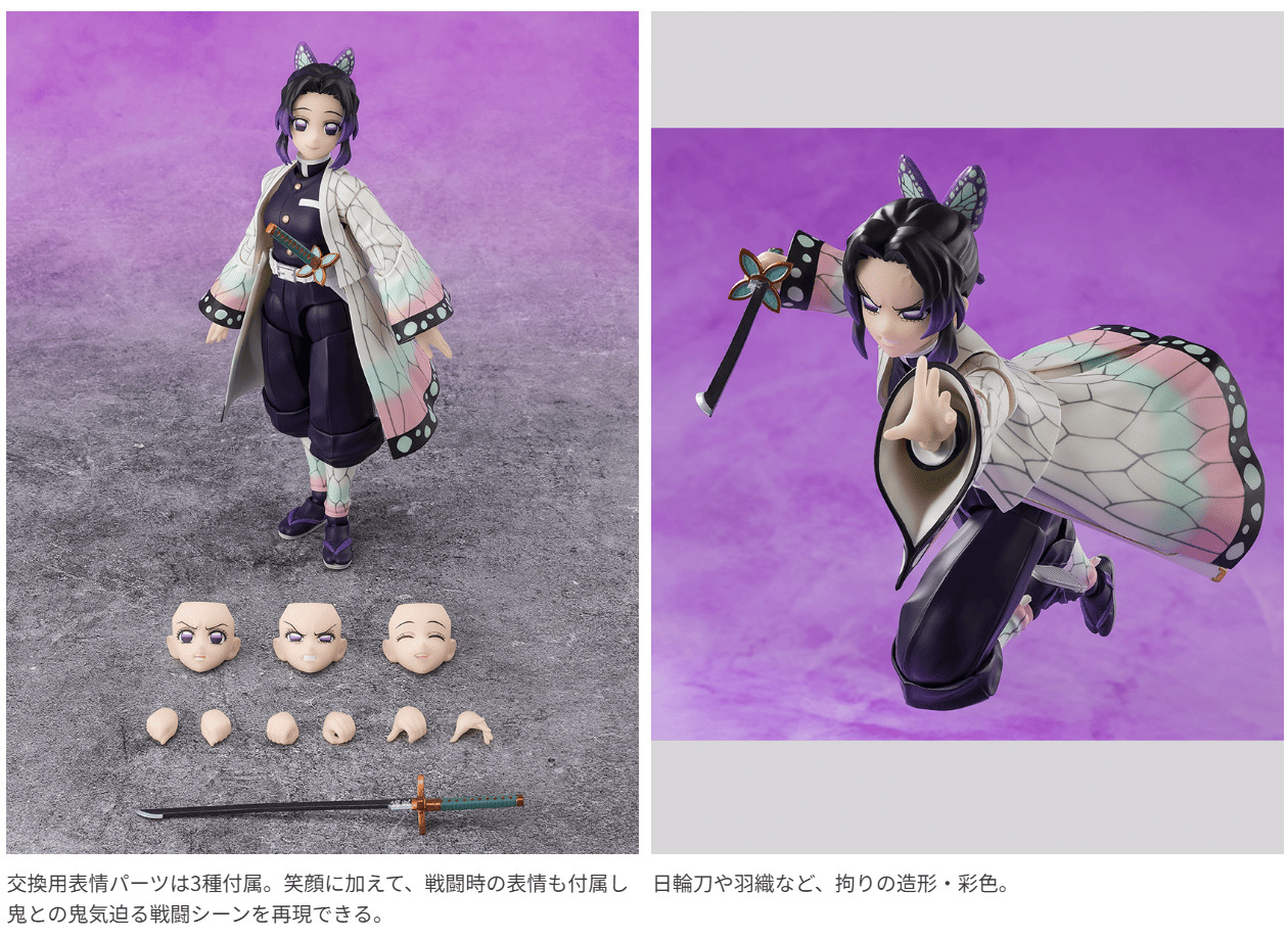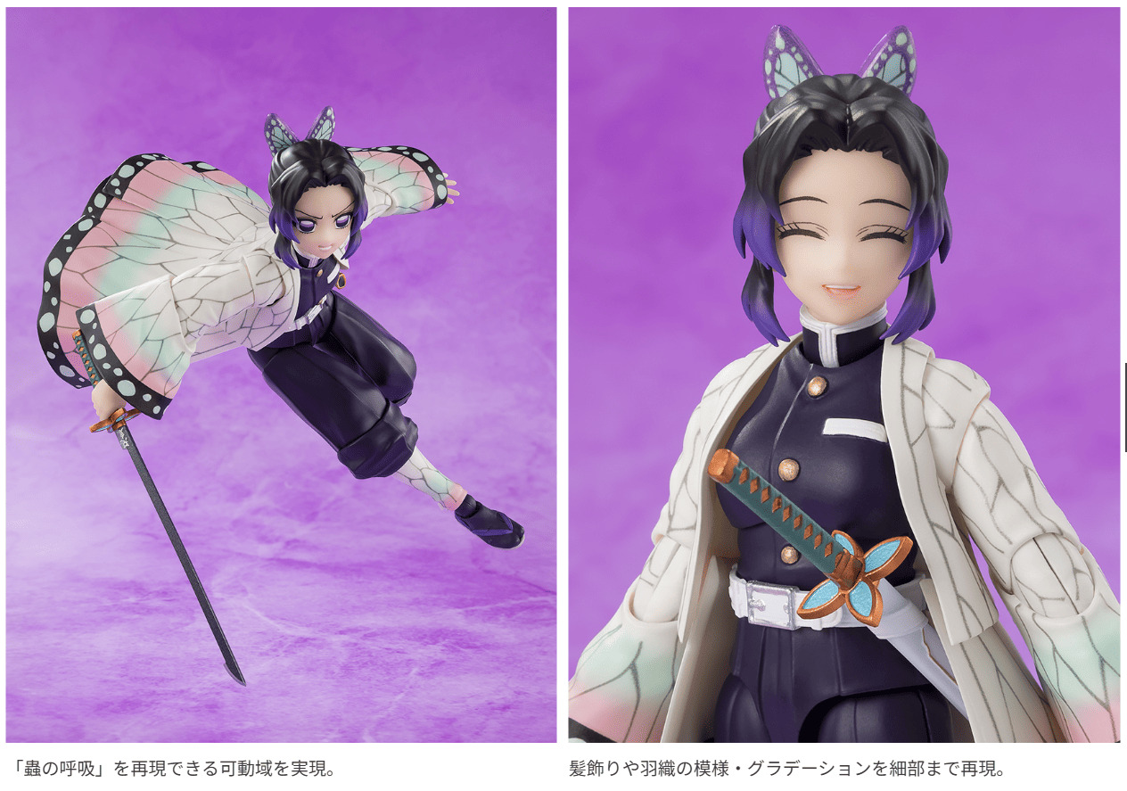 S.H.Figuartsに「胡蝶しのぶ」が登場。複雑な模様の羽織を細部まで再現すると共に、広い可動域で戦闘シーンの再現が可能。