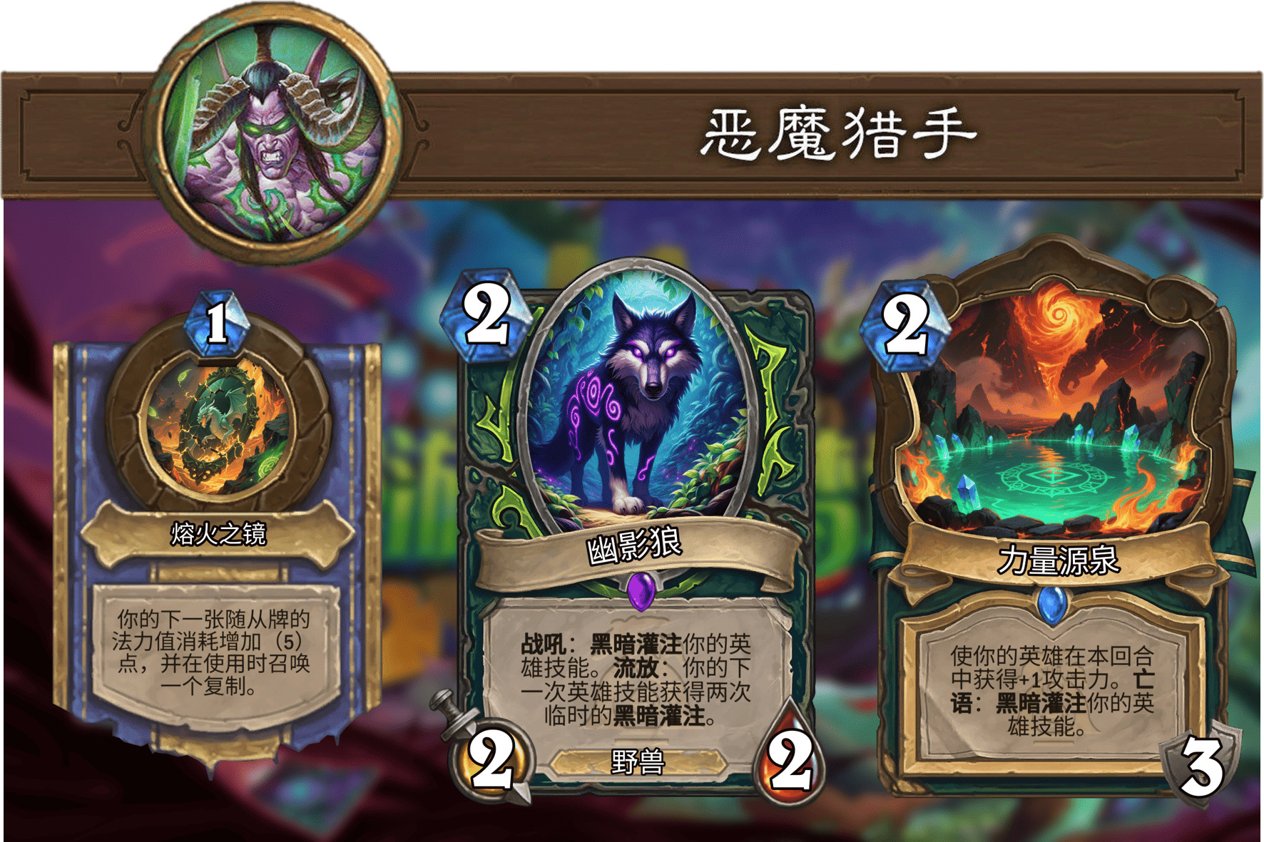 - 梦魇阵营特色:可通过黑暗灌注改变对应的英雄技能,发现一些具有黑暗之赐的随从牌。