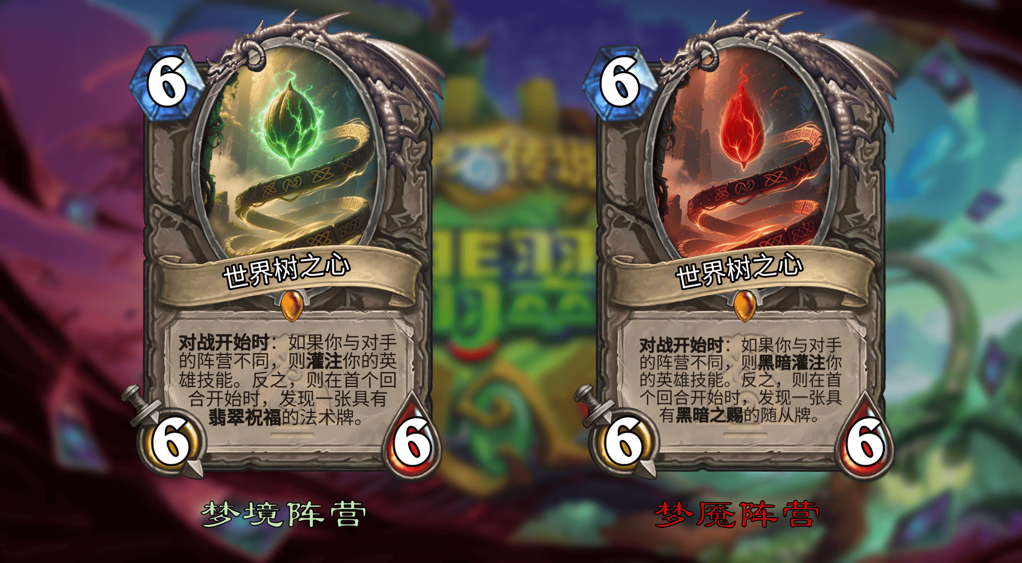 - 世界树之心在构筑时会根据阵营职业变成不同形态。(在作为发现选项和随机召唤时为初始形态)