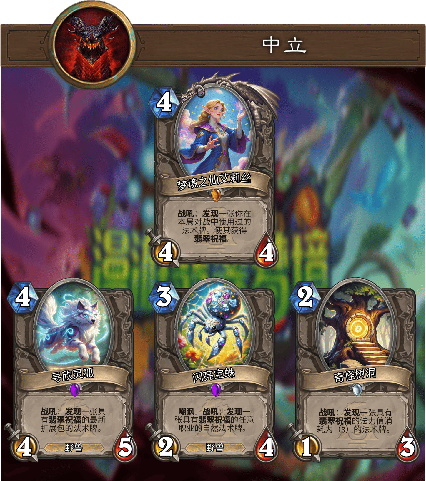 - 获得发现的全部三张法术牌,但没有翡翠祝福。