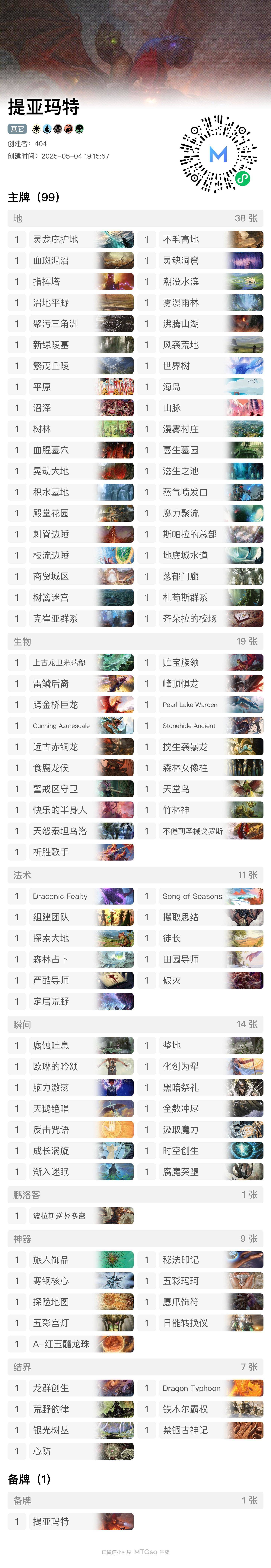 组合技链条:龙群创生→提亚玛特→主将找Dragon Typhoon,上古龙卫米瑞穆,峰顶惧龙,雷鳞后裔,加任意一龙(通常是贮宝族领或者炼金的CunningAzurescale)→米瑞穆,Dragon Typhoon,峰顶惧龙后略