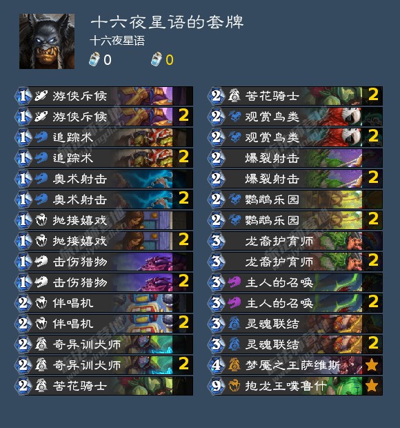 在这套战吼众多的卡组当中,鹦鹉乐园就是毋庸置疑的神卡,上限是三费丢出三张二费战吼牌,跳费让抱龙王提前一回合被复制下来斩杀等等都彰显了其不可替代的功能性。