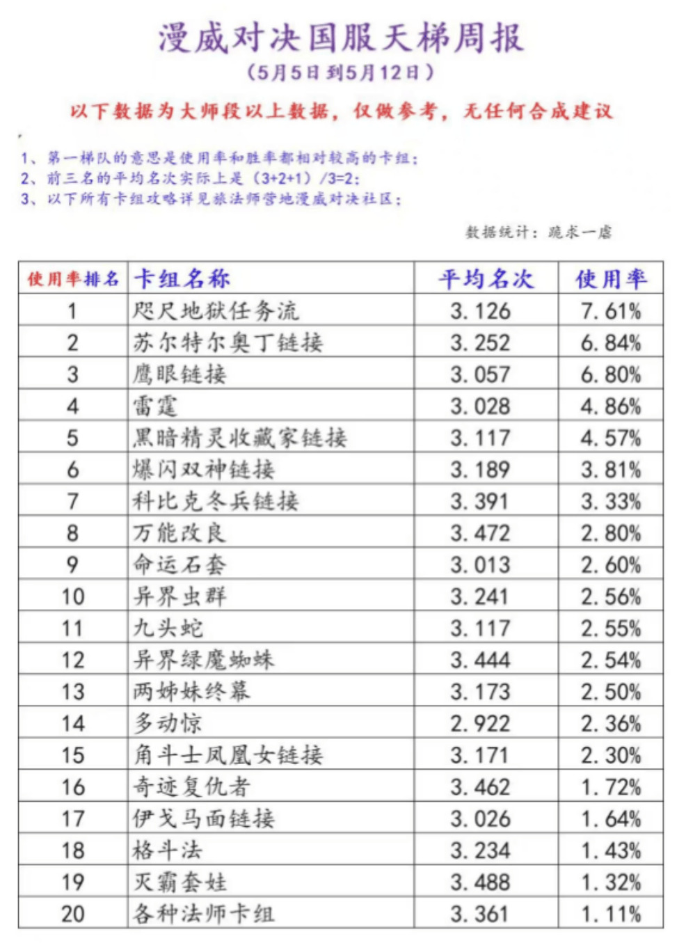 这个赛季打得真是心力交瘁,多动症鹰眼卡组泛滥成灾,我斥巨资开了6条寡妇链接,4条金刚狼链接,结果组卡基本活不过7回合,游戏体验直接归零。本着有仇必报的原则,我掏出了刚增强了的异界绿魔+命网组合来反击。虽然是个老套路,但胜在简单粗暴,硬是从大师五一路冲上王者,战绩为1213361145322121332126152,烂分率80%,吃鸡率32%,平均名次2.52。