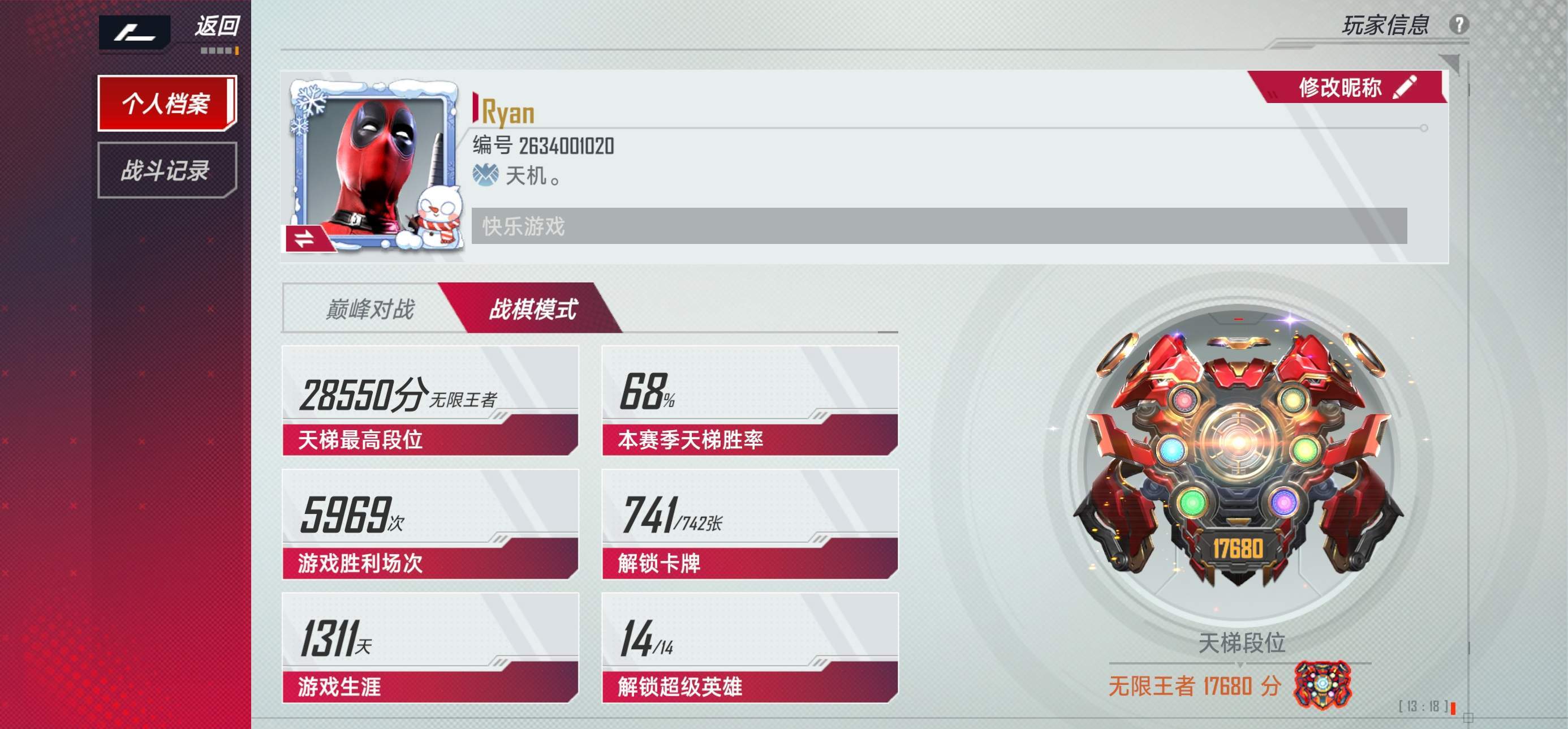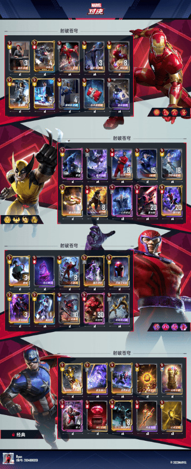 大家好,我是一直在玩的Ryan(2634001020),这个赛季我除了比较贵的十界雷霆没玩过(玩不起),先是海拉神王链接(打雷霆还是差很多)上的王,期间也玩格斗法(格斗法的夜训真的强虽然打雷霆也吃力),还有灭霸链接(没羁绊,6回合链接加手套还是老5)还有神盾局新链接(也没羁绊)直到发文前不久抽到了张界闪电护甲(也玩了下雷霆精灵,也是羁绊卡组,不过可以打雷霆)最后个人还是喜欢玩夜行者链接,最主要是喜欢夜行者的机制,还有玩这个卡组个人觉得成型了虽然不是无敌,但能靠机制打大部分卡组,特别是以小博大的时候能体会到卡牌游戏的博弈感,更别说加入了界镭射射个不停的特效快感,所以让我比较上头,虽然胜率不高,但够刺激,够快乐