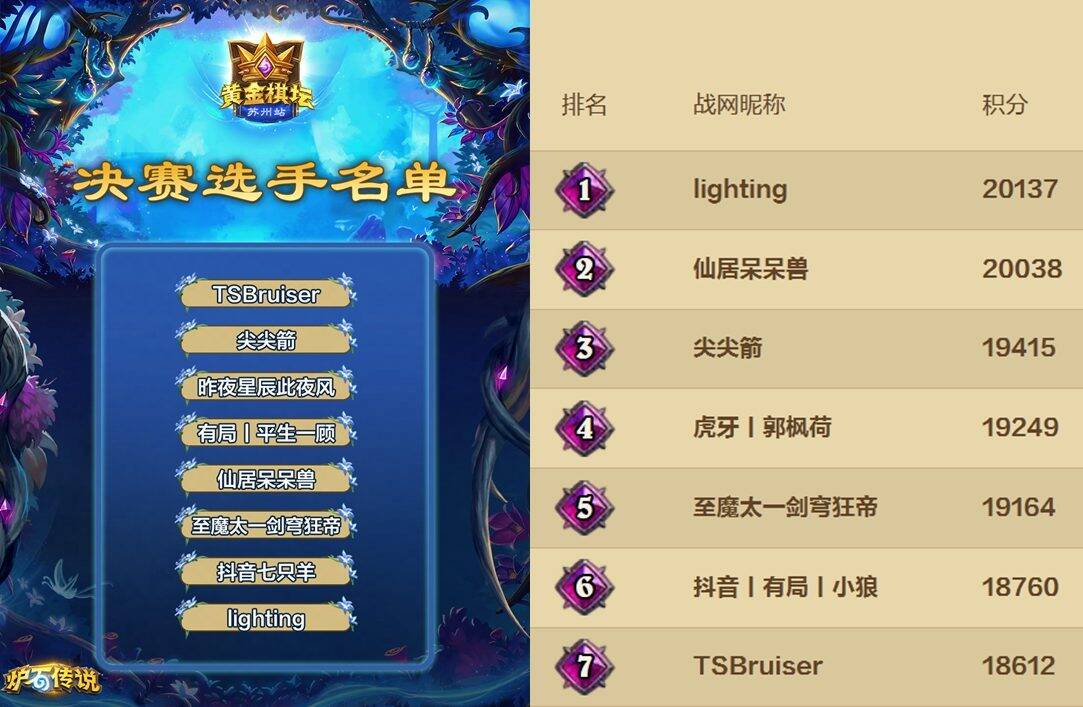 苏州站的比赛含金量也延续甚至超越了战棋黄金赛的优秀传统,“史上最强八强”的名头一届届都在刷新,到了今晚竟然还在继续突破。本次八强中,国服(也是全球)天梯2万分大神中的三位中国人lighting、仙居呆呆兽、小孩无敌(尖尖箭)悉数在列,上届战棋冠军七只羊也打出了背靠背进决赛的壮举,距离复刻连冠神话只差一步;还有去年高校赛冠军TSBruiser、平生一顾、弈谋(至魔太一剑穹狂帝)也都是知名老将。可以说这是比赛和天梯排名最相关的一次。