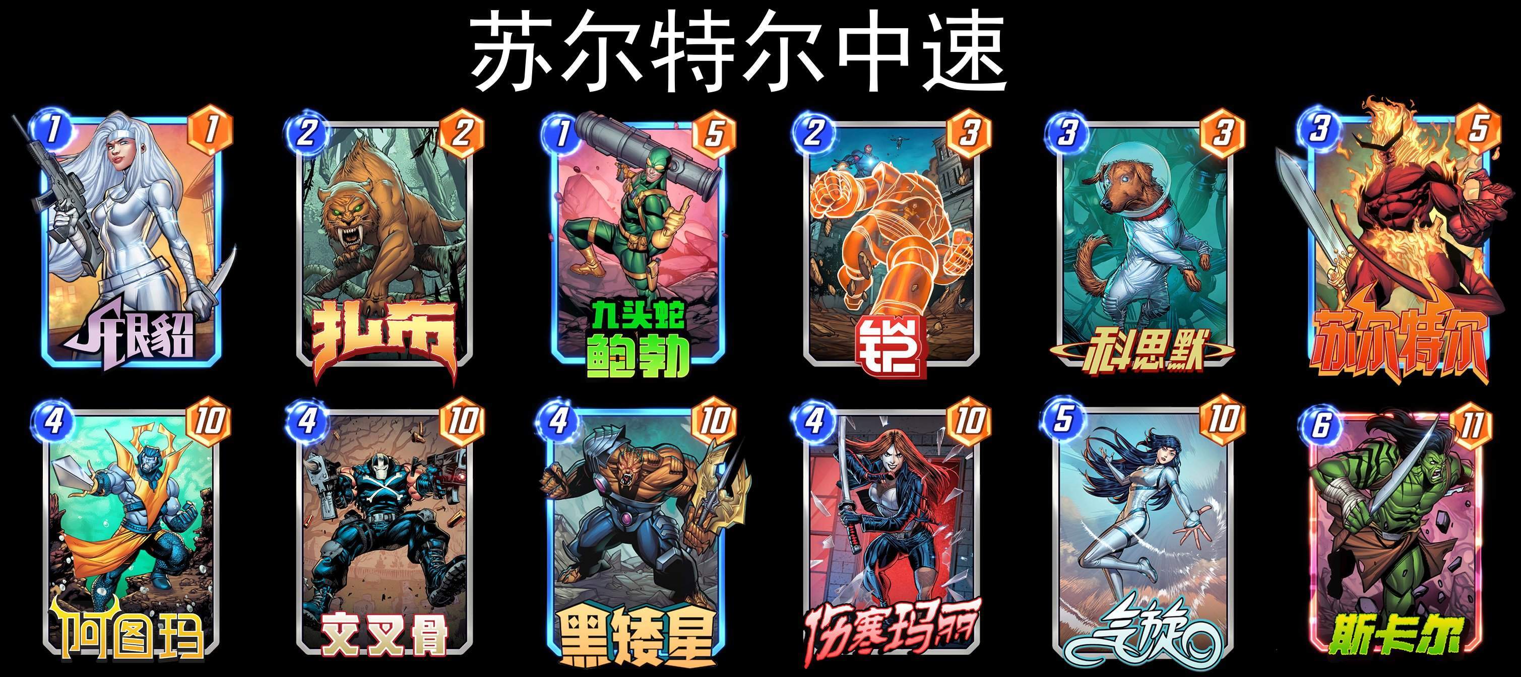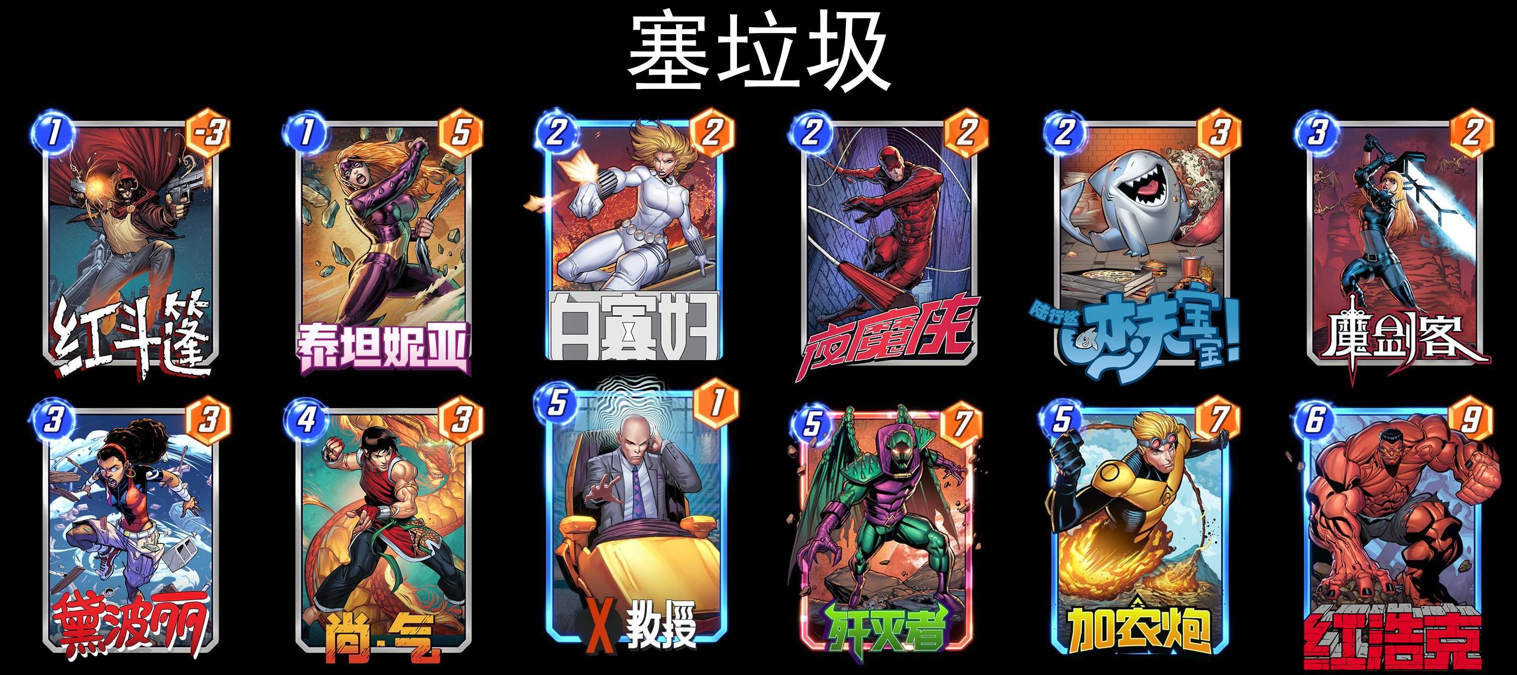 可以小费展开,也可以黑鹰魔形女,根据对手的卡组情况来抉择,钢铁侠也比较出其不意。红坦克斩杀很强,需要关注对手会不会填满其他路,导致红坦克无法触发。