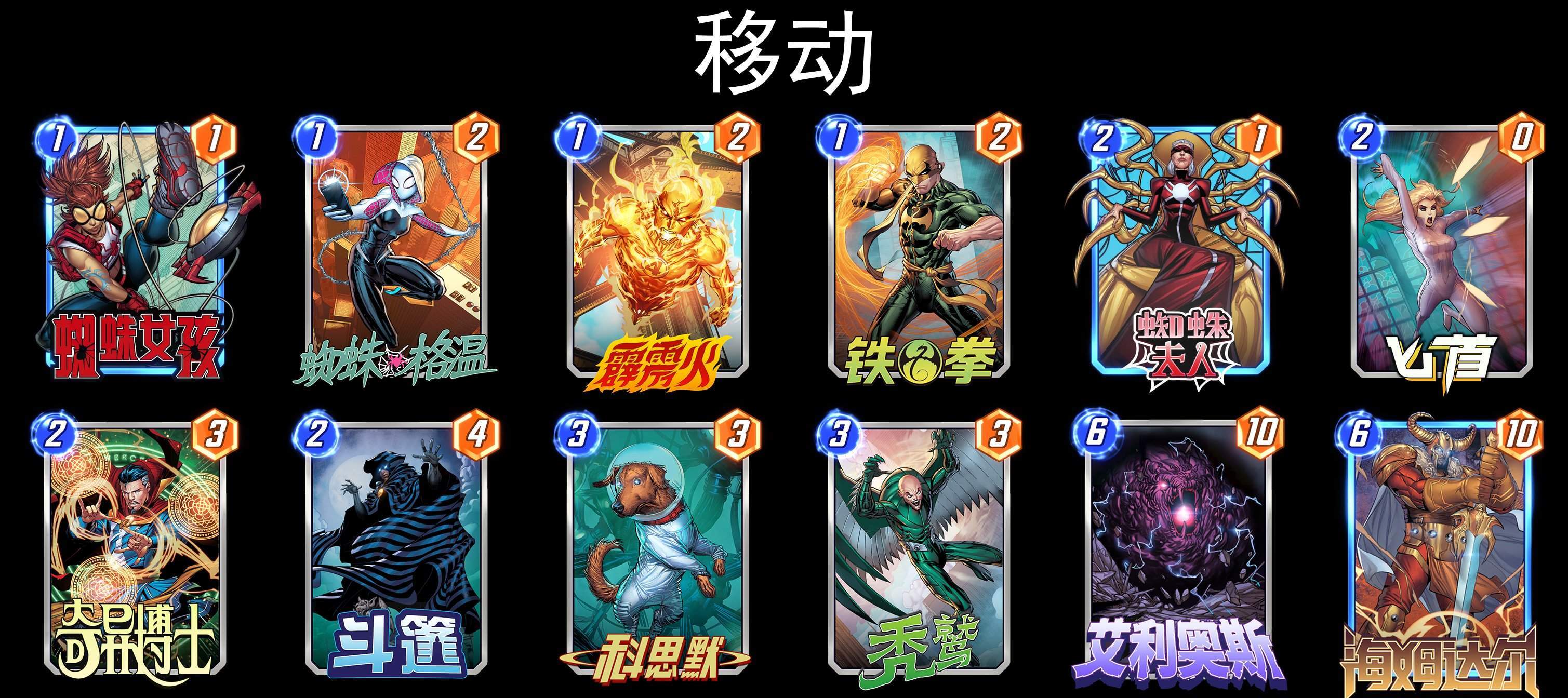 蜘蛛夫人的移动卡组,热度明显下降了,试过才知道脑补有多强,现实有多尴尬,不卡手的情况下,也依赖操作,卡手的时候更需要合理的战力分配。大部分玩家只能做到当前回合打出最大战力,至于这三路的战力如何分配赢下两路,根本顾及不到。