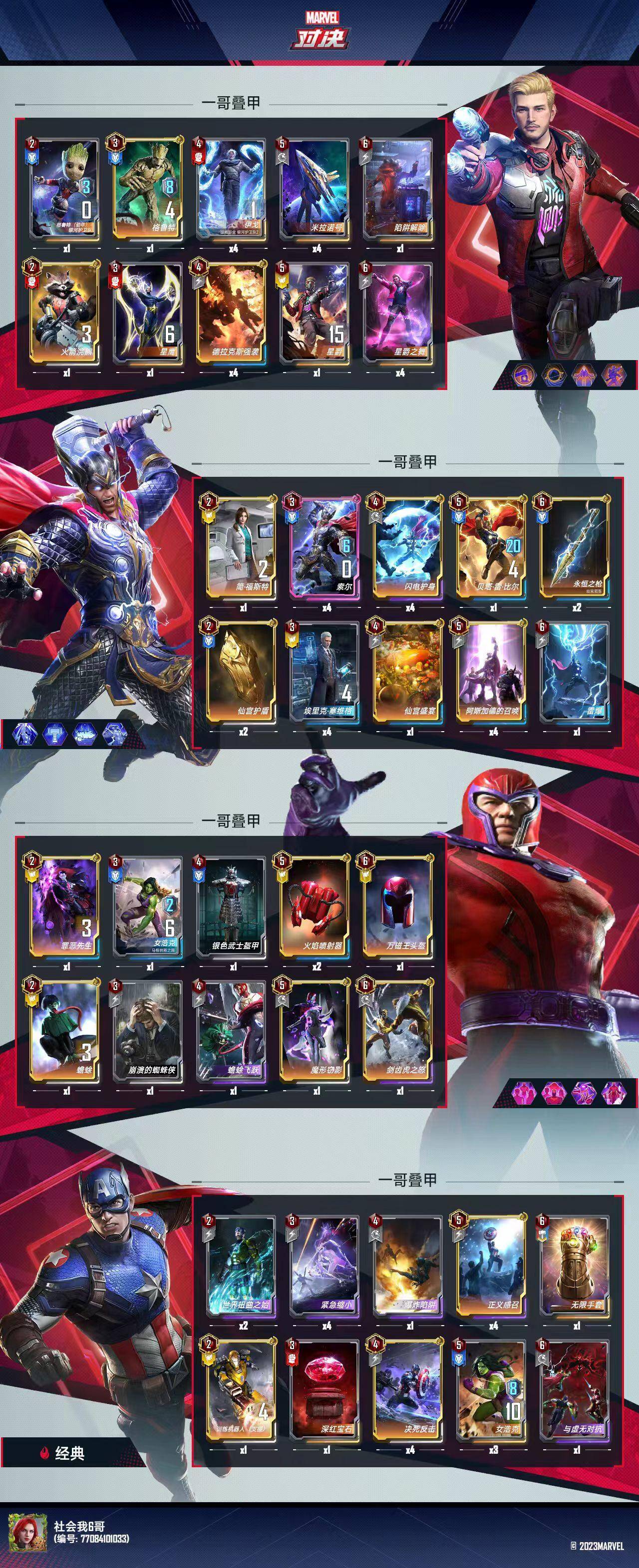 3-5回合:找齐小浣熊链接和仙宫链接,不追求埃里克星级,但是一定要有,索尔带盾。就这些核心卡,其他不重要,适当滤牌,打缩小。凑齐小浣熊和埃里克链接,基本就锁血了。还有就是女浩克的消退,如果索尔来的早,直接上女浩克,如果格鲁特先来,就别上了,等索尔靠遭遇叠甲高于小浣熊了再上。