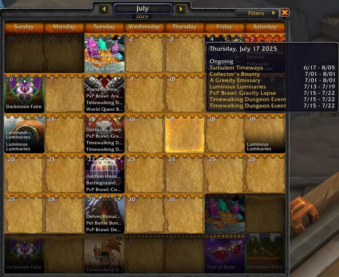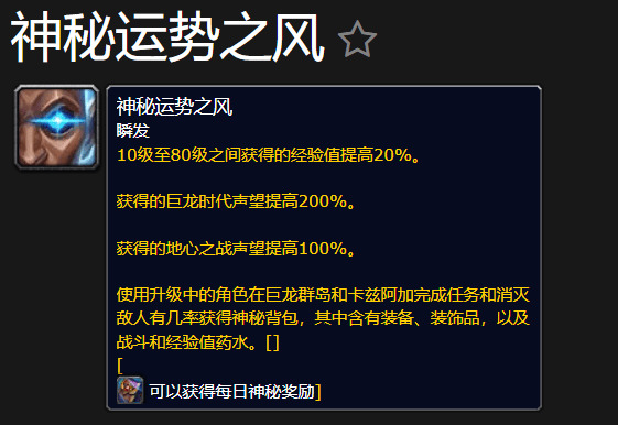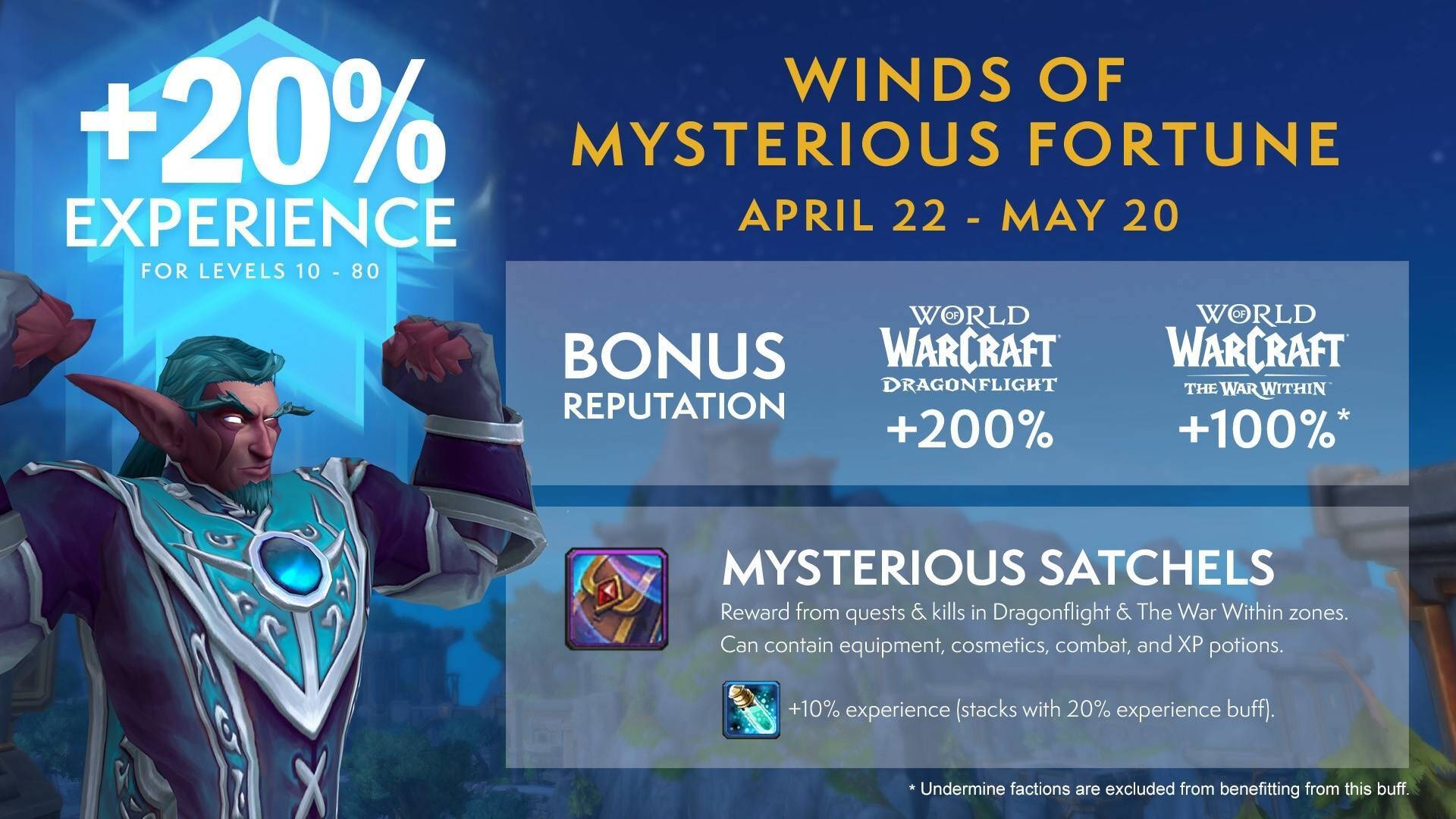 该活动最初与补丁 11.1.5 一起发布,活动期间,玩家可以额外获得 20% 经验、100-200% 的地心之战与巨龙群岛声望,以及风化的神秘背包(包含各种药水和装备)。