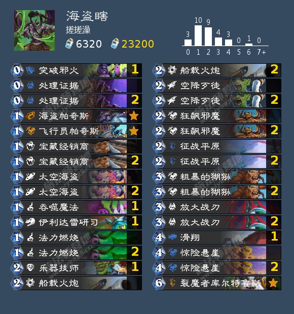 海盗瞎强在续航能力,前期可以通过海军三大将快速铺场站场持续输出,中期如果手牌匮乏,可以通过放大战刃补手牌,后期可以通过地标+猎魔者技能叠出高伤害,整体节奏丝滑。
