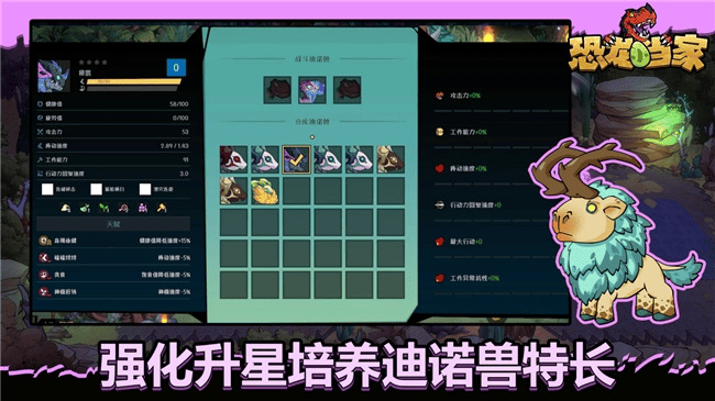 效率有高低,有些迪诺兽勤劳且低能耗,所以干活一流,而有一些则战斗凶猛拳拳到肉,是下本探索的好手。如何让迪诺兽又勇猛又卖力干活呢,只需通过孵化、培养、交配的三阶段系统,玩家有几率培育出携带双亲特性的独特后代,试想培育出一直低能耗高爆发效率满分的核动力迪诺兽这成就是不是能在社交群显摆好久。这种“孵化-培养-优化”的循环链条,让每一次繁衍都成为改变生存格局的关键决策。