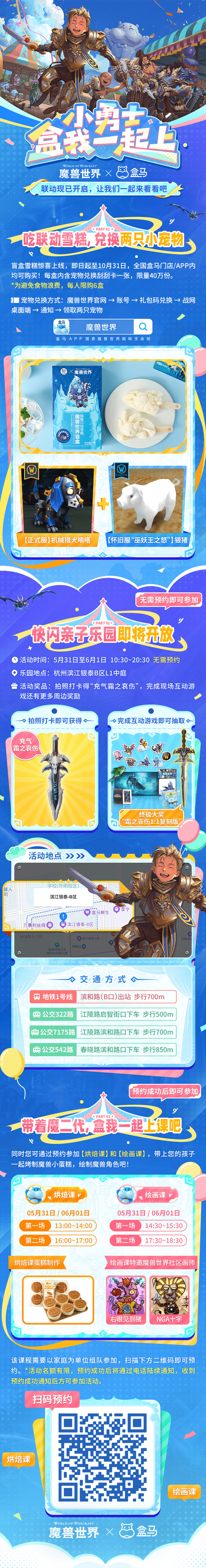 《魔兽世界》x盒马联动现已开启。2025年5月25日起,在任意盒马门店或盒马App购买魔兽世界盲盒雪糕,即可同时兑换“地心之战”机械猎犬嘀嗒和“巫妖王之怒”怀旧服银猪宠物。除此以外,5月31日~6月1日,魔兽世界亲子乐园活动将在杭州滨江银泰B区L1中庭举行!