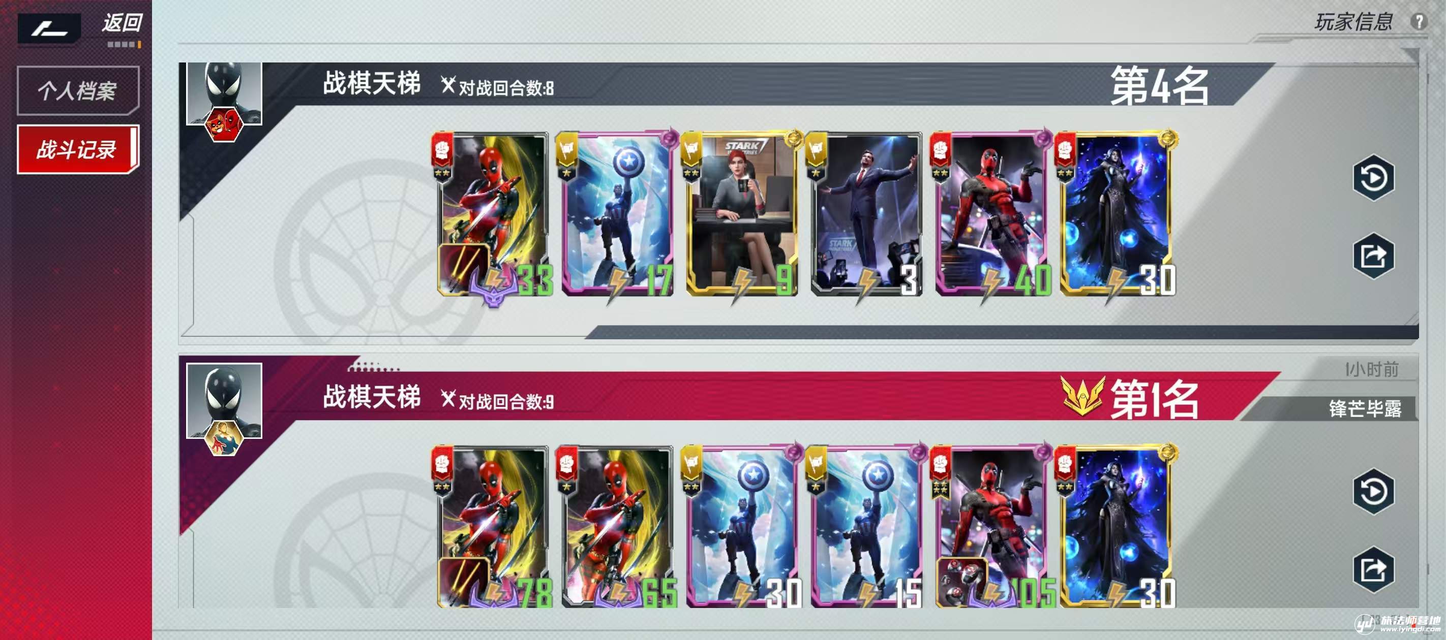 4、6-8回合,上五本开扭曲,开始抓取核心卡牌,配合辣椒和托尼的链接,变现钢铁侠卡牌,打开经济差距,尽快凑齐女死侍美队链接。需要注意女死侍带武器给点子的效果配合女神打出吃点子给经济的小技巧拉开经济差,抓取完整的阵容。