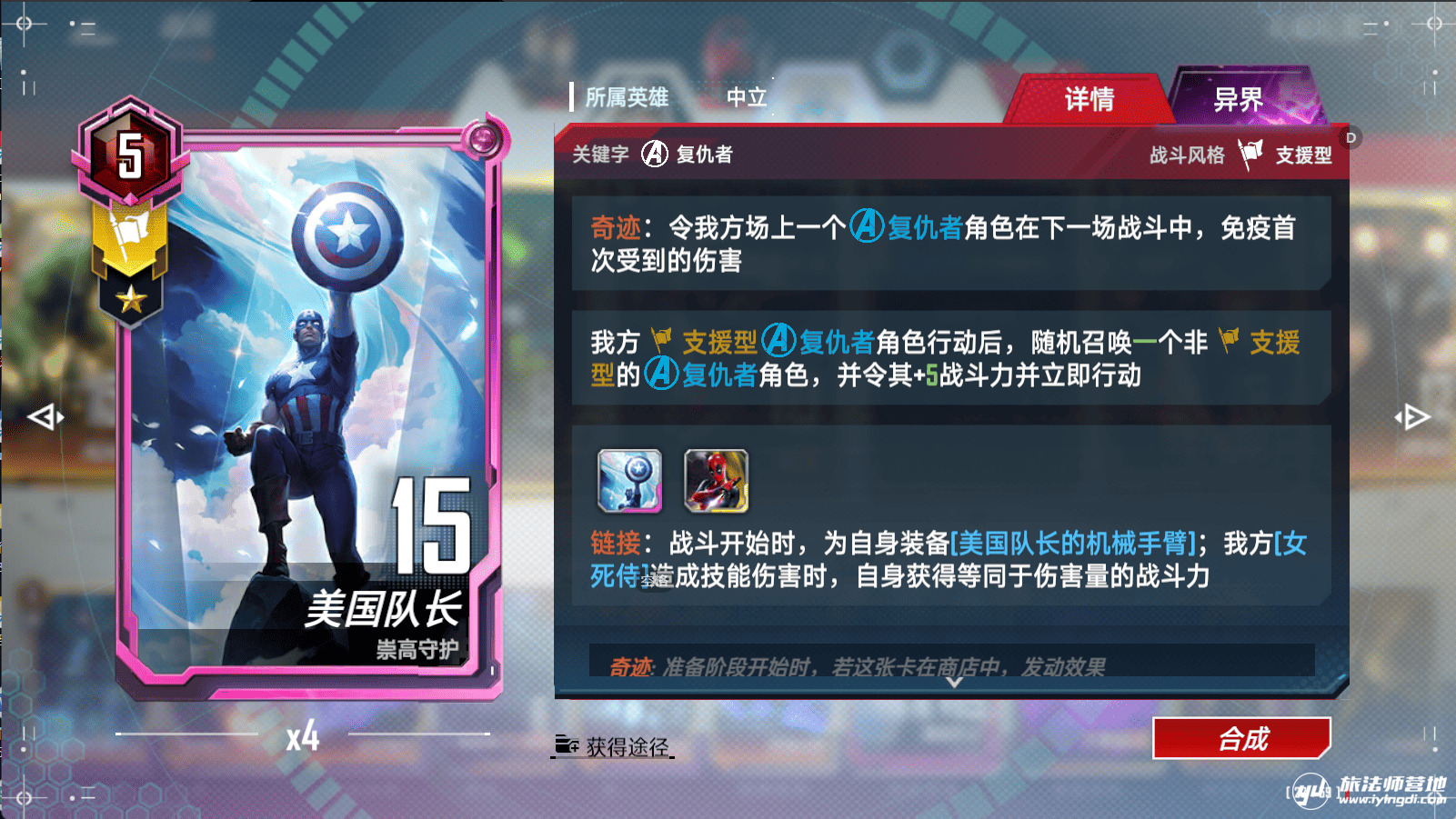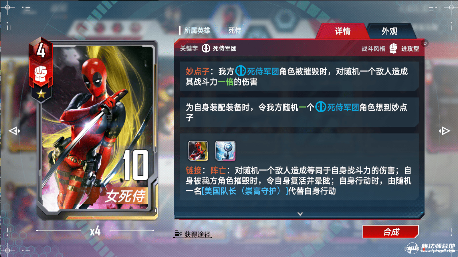 链接效果:女死侍爆炸且有美队代替行动,有召唤,有爆炸输出;美队女死侍造成伤害时自身成长(不永久),装备机械手臂继续爆炸输出伤害!