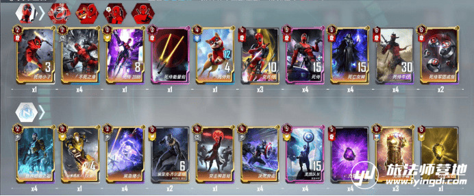 扭曲可用拉满,毕竟关键卡也是挺贵的,机器打工。血魔带法缩小和豹子,若带四侠锁配合隐匿无形,实现给美队隐匿保护一手不**!突击神盾局应付特殊召唤的卡组就一好手;决死反击不用多说了;界美队核心链接拉满,另一个位置力量宝石配合智锁烧残疾人很舒服;或者有界冬兵可以带上,也是给美队隐匿使用的,可看个人使用习惯。手套掀桌子,心灵+夜巡老队友了!