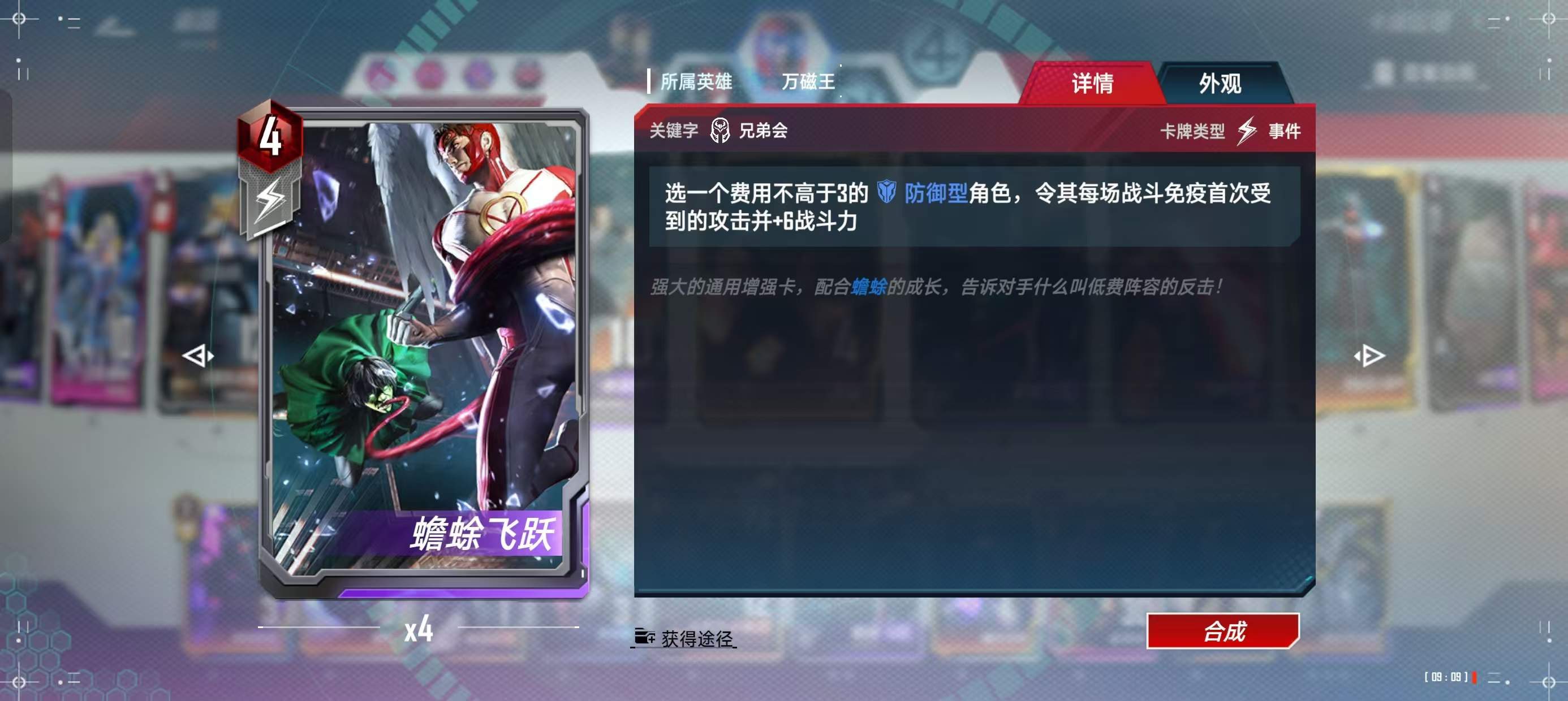 对技能选择要求不高,主要选万磁王的兄弟会集结和为了变种人最强,蜘蛛侠蛛网战士和英雄责任不错(悄然降临有的时候不好用)