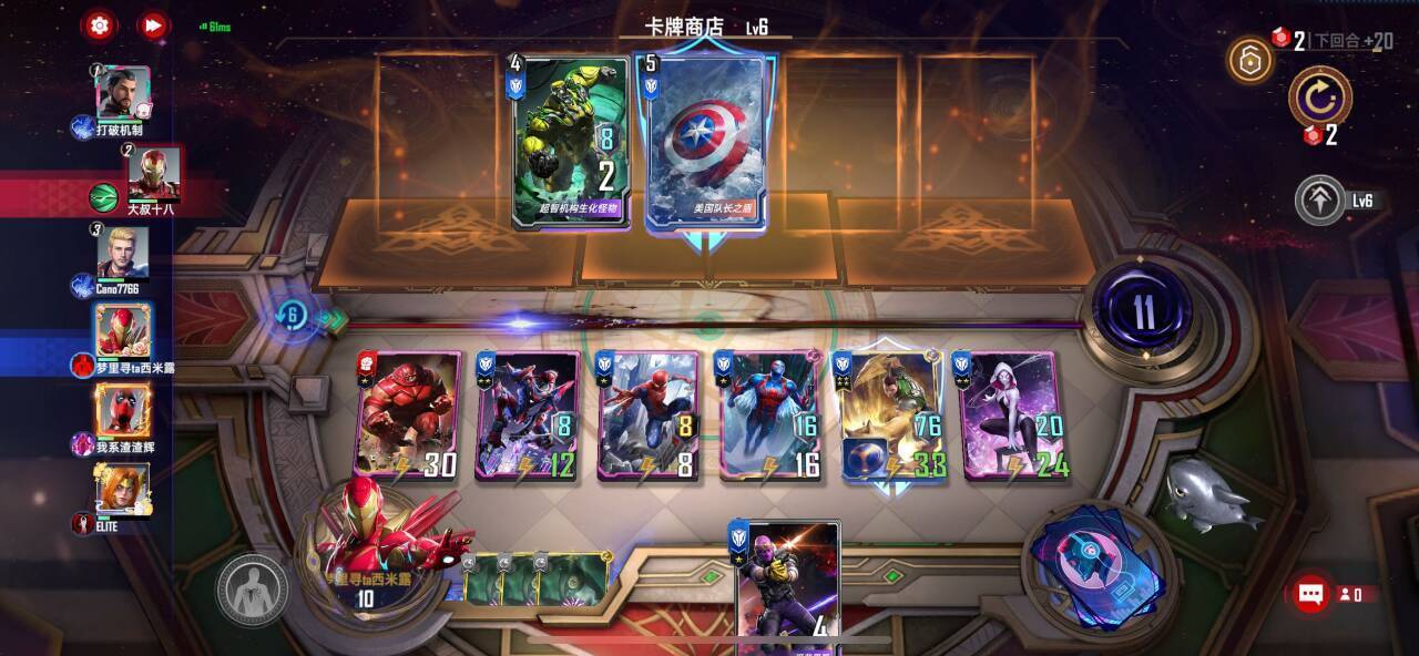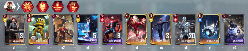5费:托尼经济必备卡,究极钢铁侠,用于速本扭曲的回合,低费补场面战力或达成托尼链接时补经济
