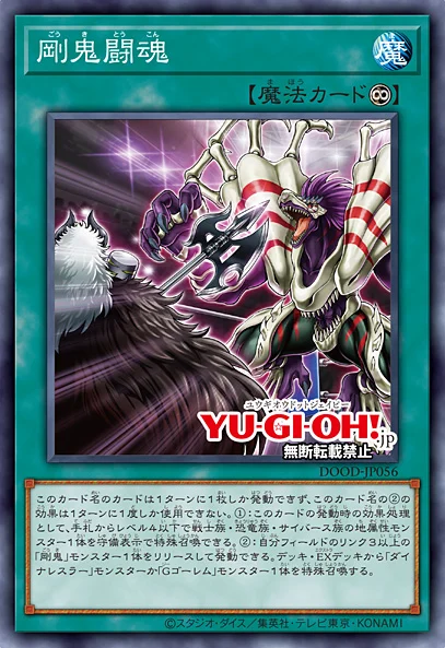 ②:将自己场上的1只连接3以上的「刚鬼」怪兽解放才能发动。从卡组·额外卡组将1只「恐龙摔跤手」怪兽或「G魔像」怪兽特殊召唤。