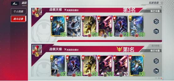 5费 教授1张多了影响心灵拿牌 ;界镭射 拉满(我后期一般会2+1转4 如果不卡格子 金刚狼新链接配2+1界镭射真的射起来很舒服) 站位可参考战绩图