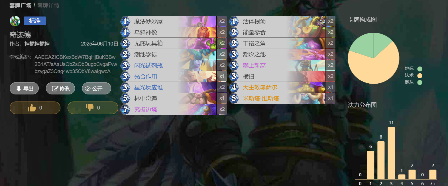 运营打法:打快攻就法术解场过牌,靠边境找卡劝退。打慢速卡组可以稳住场面的同时贪边境反复触发找致胜牌,视环境决定,如果环境慢速卡组多可以去掉一张地标卡带鸡蛋,不为别的只是不想被导演抽死。