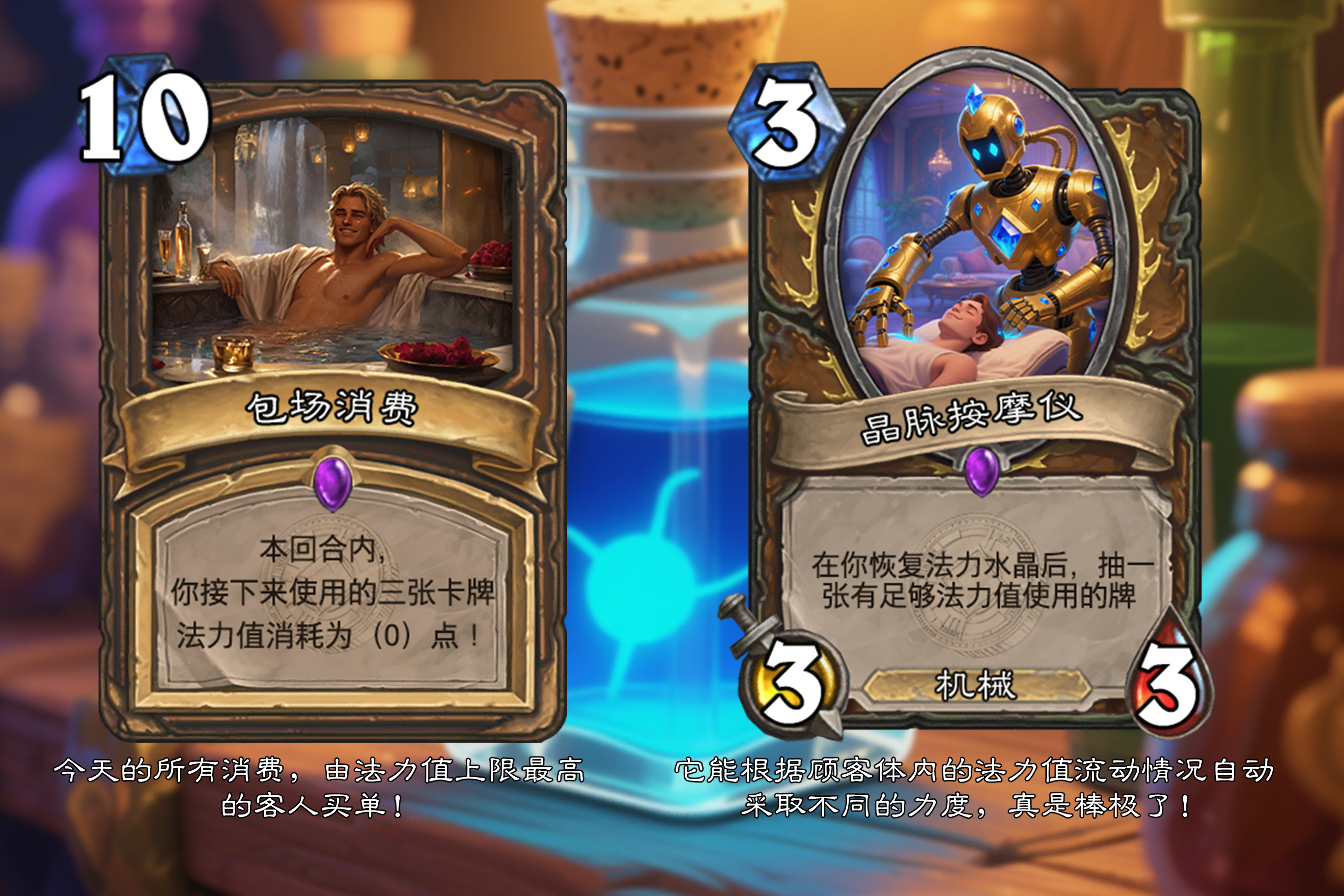 除此之外,会所还推出了一系列魔晶衍生产品:例如据称“一滴胜过七天冥想”的魔晶滋补剂;装有法力感应系统的理疗手环,能在你焦虑时自动播放轻音乐(由小精灵合唱团录制);还有能根据使用者体内的法力波动自动调节力度的晶脉按摩仪,每一项都受到了消费者的强烈欢迎。