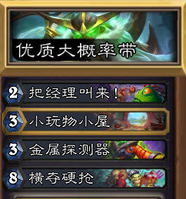 解析:游客能把手里的大法术与月火术或者和硬币费用互换来提前打出,硬币体系是盗贼游客的优势则不必多言,横夺硬抢为法师提供了解大怪的能力。唯一问题在于这个卡组不是进攻方,硬币刀带一把还是两把哪个合适些,横夺硬抢带两张会不会太卡手。