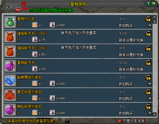7月2日-7月10日暑期限购期间,大侠在“游戏活动大使”处的暑期限购商店可购买各种超值道具。
