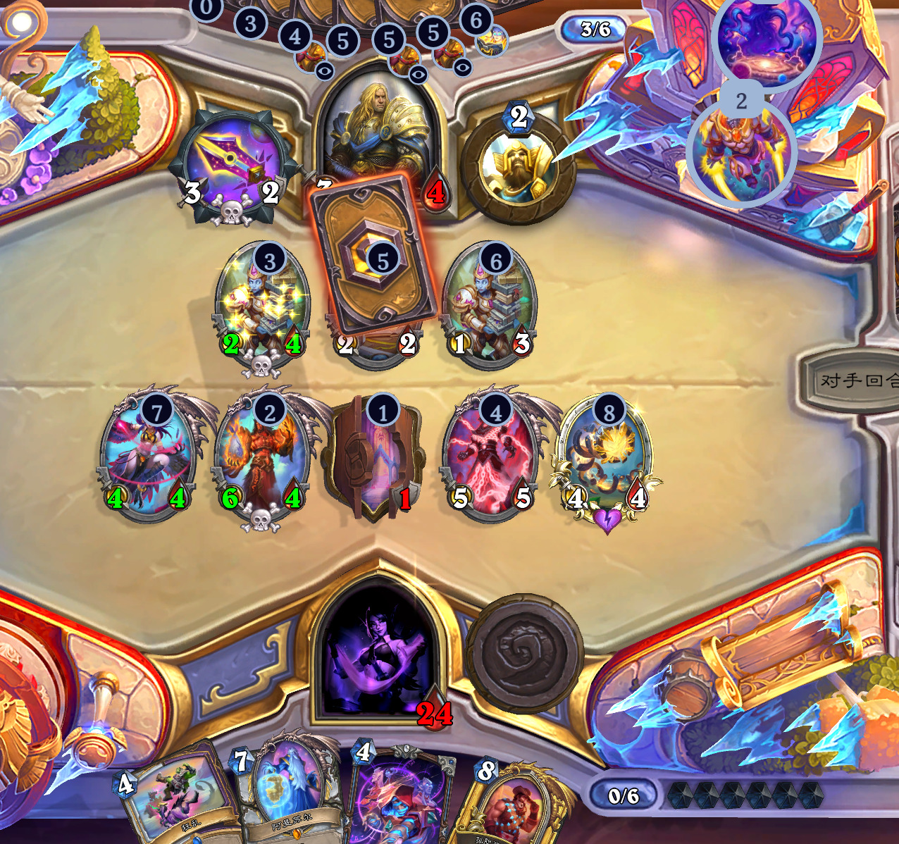打40血的慢速,变身之后也有比较高的爆发,这里对手27血,纸天使地标抽到虚灵,虚灵再抽牌库的蛇油和灼烧,一回合秒杀