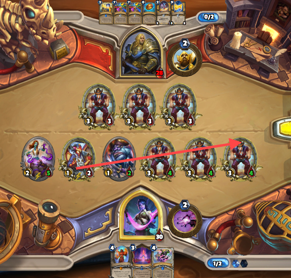 为什么玩30,因为30能带3个海盗拉帕奇斯,前期场面交互和蹭血能力很强,40血偏防守,而且牧师过牌弱,30宇宙很好胡(前期海盗,中期地标抽牌,后期标雷诺和神雷诺,泰坦打拉扯,然后变暗影收割者斩杀),多数对局姐夫是当咆哮和嗜血用的,前期就当快暗玩
