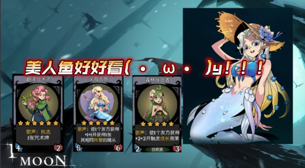 在上篇攻略我提到过美人鱼前期最重要的玩法就是获取10张牌从而触发技能效果,而获取这10张牌的关键在于多拿经济型随从。在正常的节奏里,美人鱼绝对可以在第4-5回合做完任务,甚至可以提前到第三回合就拿到高本歌声随从。那么如何做到这种程度呢,就是将所有经济都留给经济型随从,在一本的经济型随从有嫩芽侍者、祈星师和窃贼,这其中嫩芽侍者可以直接产出牌要优于俩回合拿到牌的祈星师,而窃贼的优先级是最后的。如果在第一回合没有这三个随从,那么我建议可以在第一回合空城。