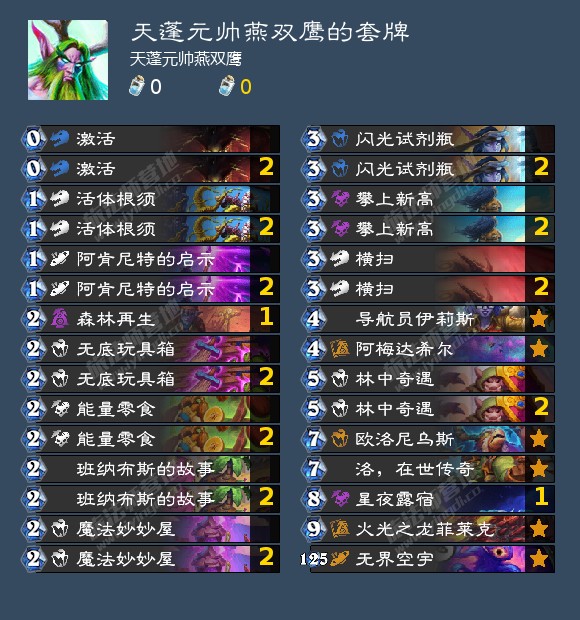 前期用小法术加2费2个嘲讽混一混就好,起手留地标加跳费。卡组随便抄的