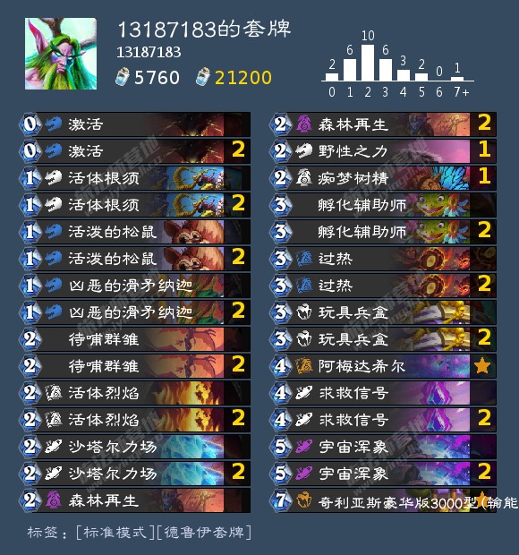 这套牌胡起来上限非常高,而且天梯德鲁伊都默认为法强或者大哥体系,一般乌龟卡组也不会留aoe,非常适合偷鸡。