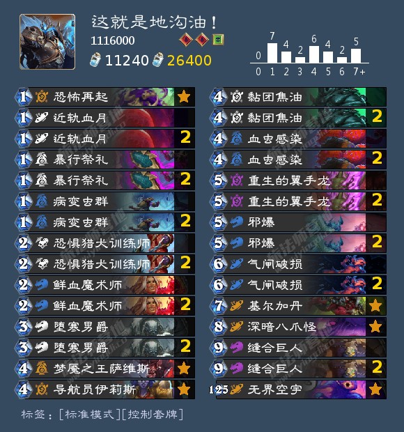 众所周知,玩弄费用的都是好卡。现版本的红红绿就是其中的佼佼者,理论上天胡四费可以一地杂毛加4/3突袭以及一个8/8大哥。不会真有人信了我描述里说的苟活卡组吧,还给我点踩。之所以说地沟油是和几个安布拉卡组相比后期有点乏力,但是同样也有机会抢死对面或者撕牌打资源战。