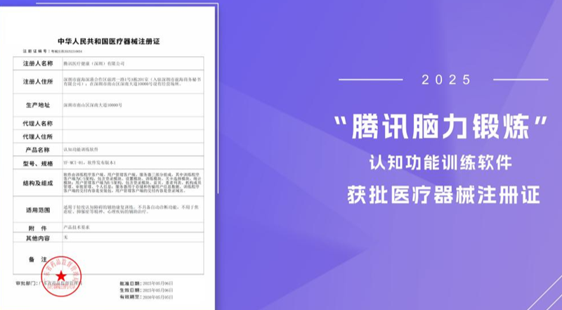 “腾讯脑力锻炼”认知功能训练软件获批医疗器械注册证 游戏化数字疗法守护银发群体脑