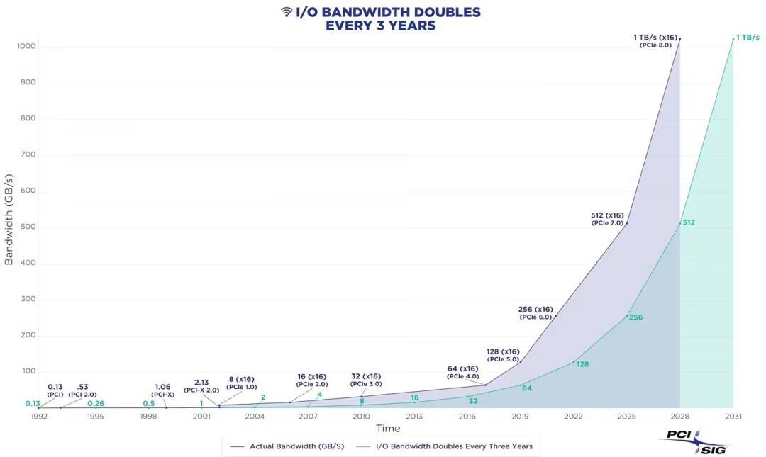 8月6日消息,PCI-SIG今天宣布,PCI Express 8.0(PCIe 8.0)规范将使PCIe 7.0的速率翻倍至256.0 GT/s,计划于2028年向成员发布。
