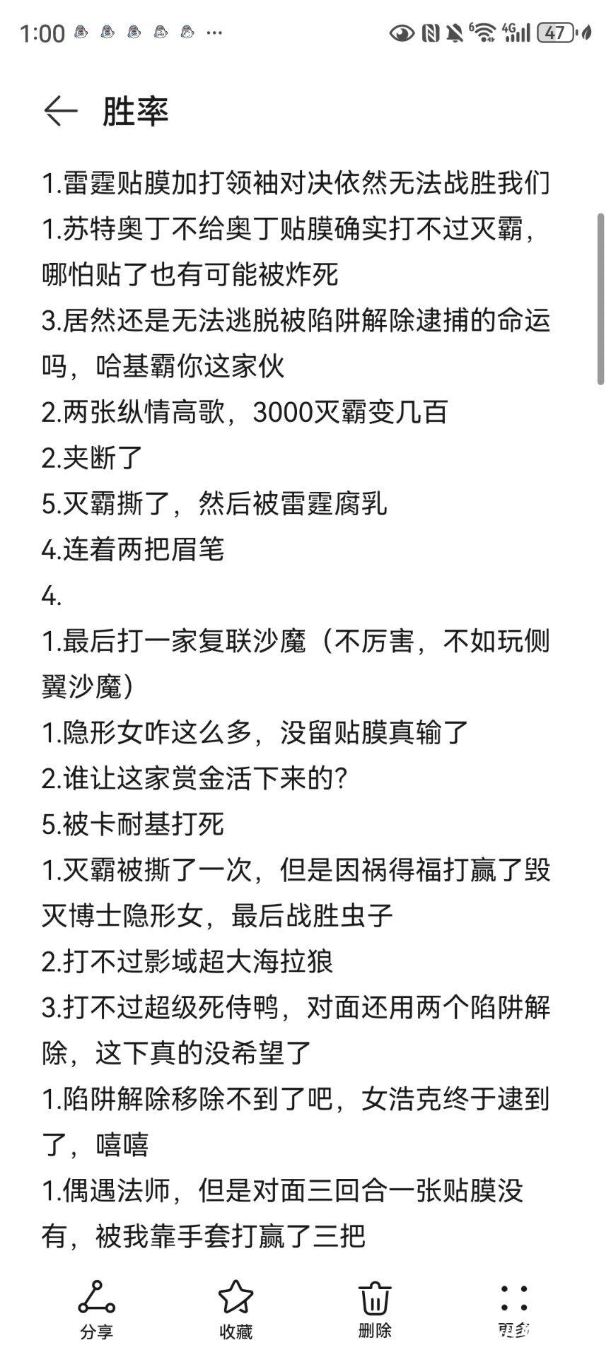 因为对局能记录的场次有限,所以我直接在备忘录记下来了。完整的就不发了,有些骂轮椅卡组的私货