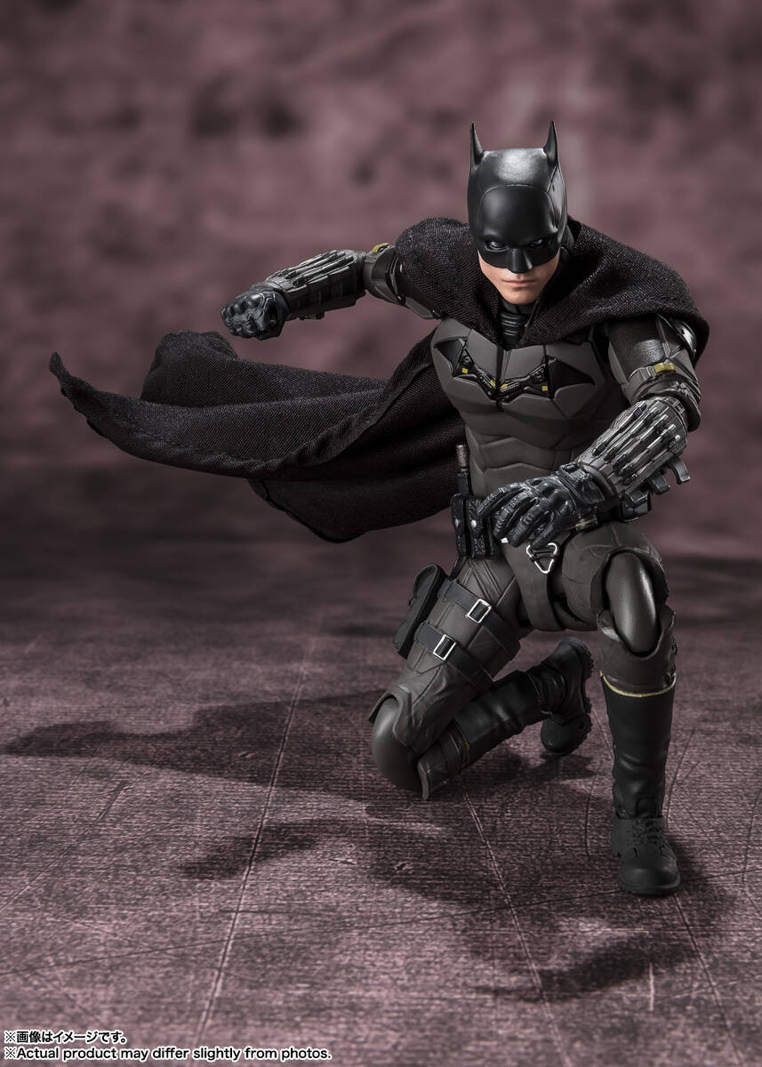 『THE BATMAN-ザ・バットマン-』よりバットマンが「TAMASHII NATIONS STORE限定アイテム」として登場!劇中再現度の高いカラーリングで、布製のマントを採用。内蔵のワイヤーを使うことで風に吹かれているようなポージングもできる。