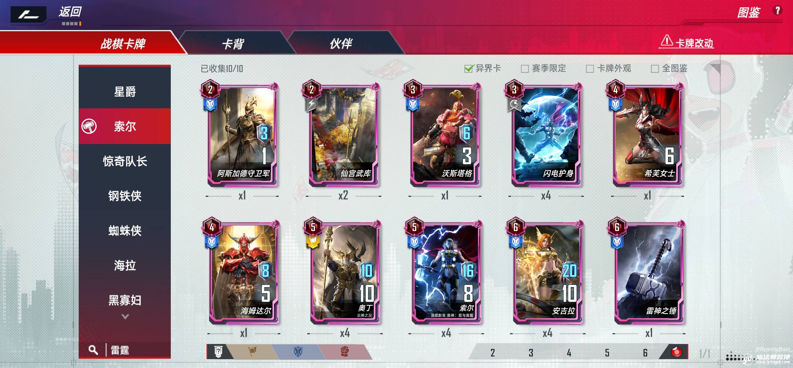 界沃斯塔格,界海姆达尔,界希芙女士(1张够用),蛇托尼(2张)