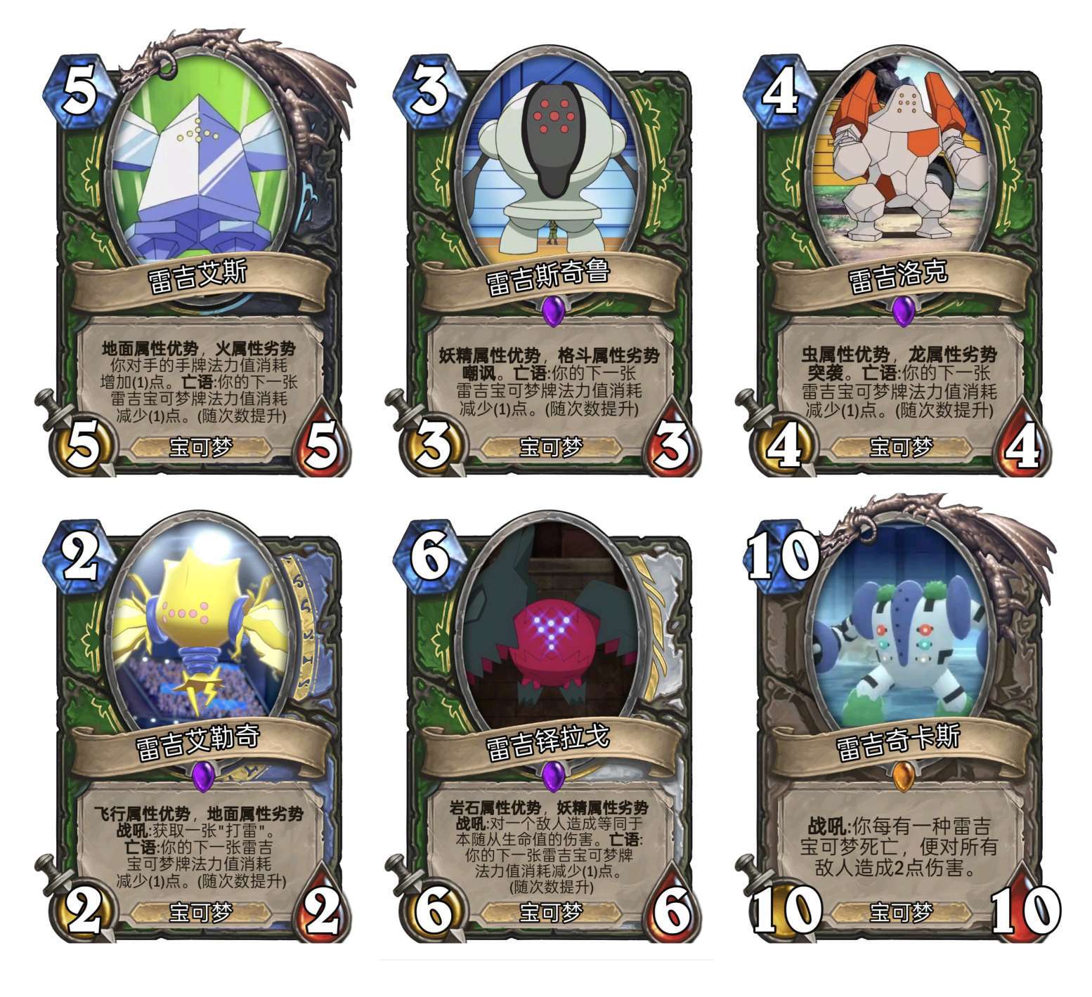 这次他带来了全新的体系-雷吉宝可梦体系,这个体系有且仅有6种,并且它们中有一个统领者为中立卡。让我先来看看这些"雷吉"们。